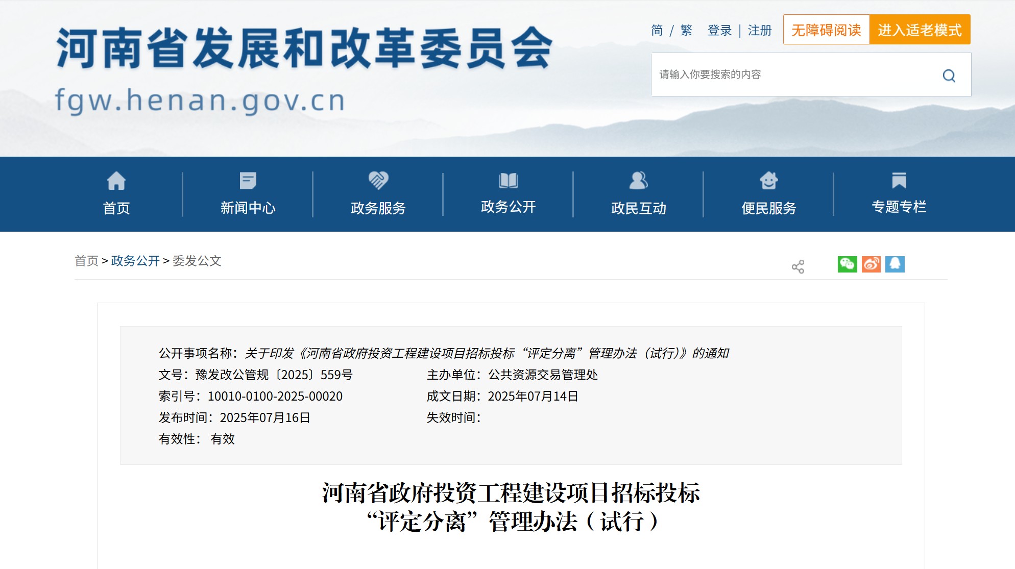 河南省發(fā)布《河南省政府投資工程建設(shè)項目招標投標“評定分離”管理辦法(試行)》